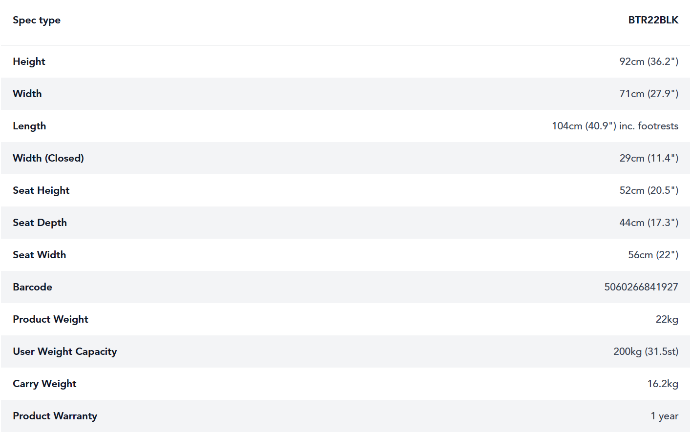 • Generous weight capacity of 200kg (31.5st)
