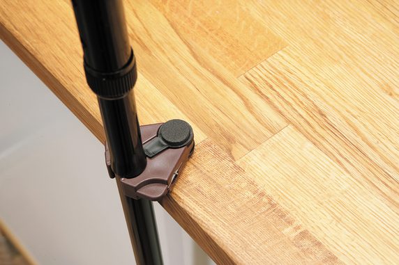 • A simple and convenient way to hang your stick on a table top